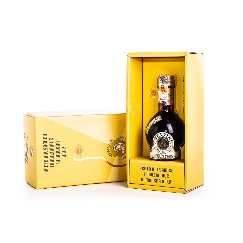 E’ simbolo di una tradizione e di un’arte antica che si tramanda da generazioni. 25 anni e il mosto cotto sono i due unici ingredienti. I legni pregiati, i sapienti travasi e i preziosi sottotetti modenesi fanno il resto. Ideale con insalate miste, uova e tonno, pinzimoni, marinate di carne o pesce, selvaggina, carni bianche o rosse, pesce, frittate, gamberi, patate fritte, formaggi. Dal sapore unico e caratteristico, un perfetto connubio tra mosti d’uva e aromi dei legni antichi.