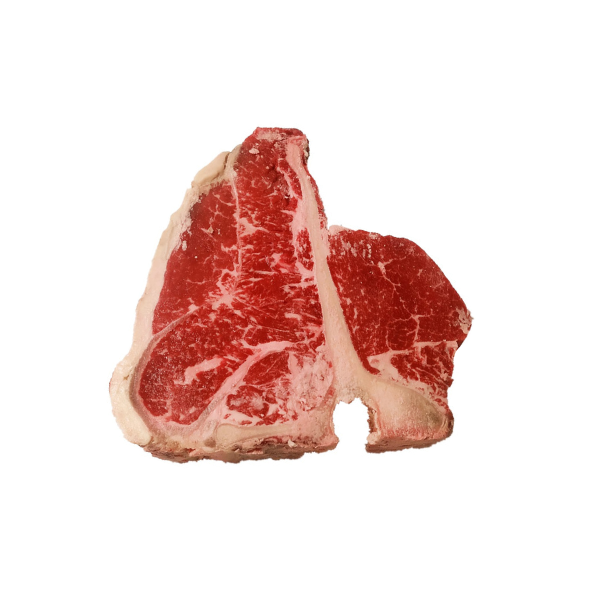 - Taglio specifico: la Fiorentina è nota per la sua forma caratteristica a “T” o “Porterhouse”, che include due parti di carne separate dall’osso centrale a forma di “T”. Queste due parti sono il filetto e il controfiletto. Questo taglio include carne pregiata da entrambe le parti.