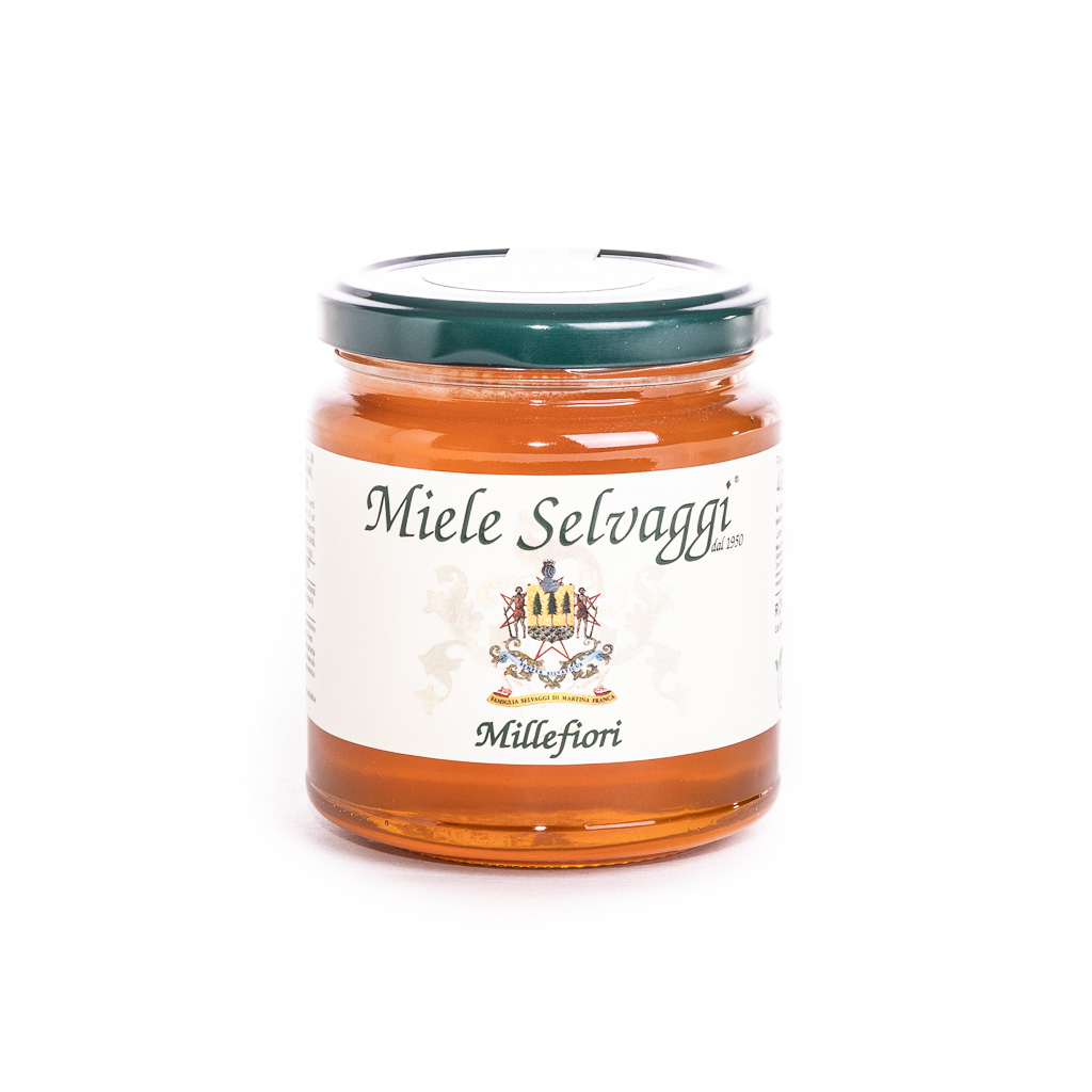 Il fascino del miele millefiori è che ogni lotto di produzione può avere colore e sapore diversi. Ottimo a colazione, nei dolci, in agrodolce. Nettare di vari tipi di fiori di specie presenti nella regione Puglia.